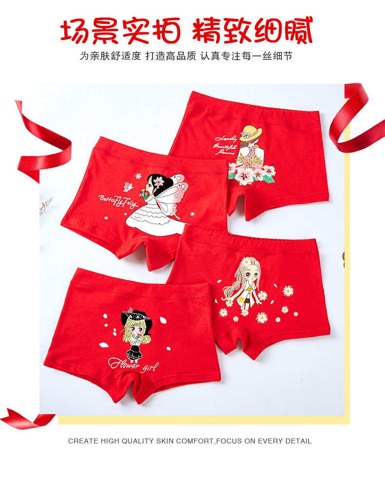• Girls' underwear cotton boxer flat pants 8 children 6 children boxer 10 primary school girls shorts head 12 years old